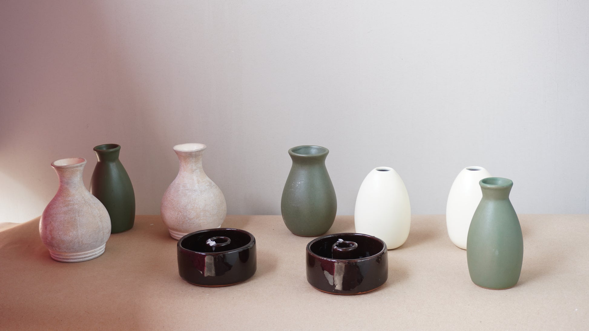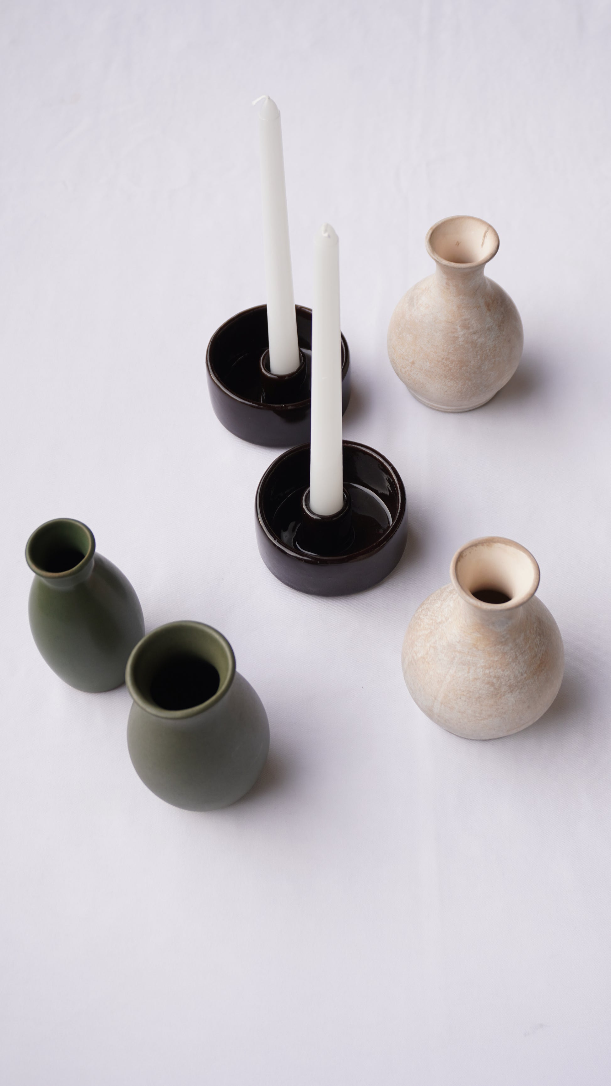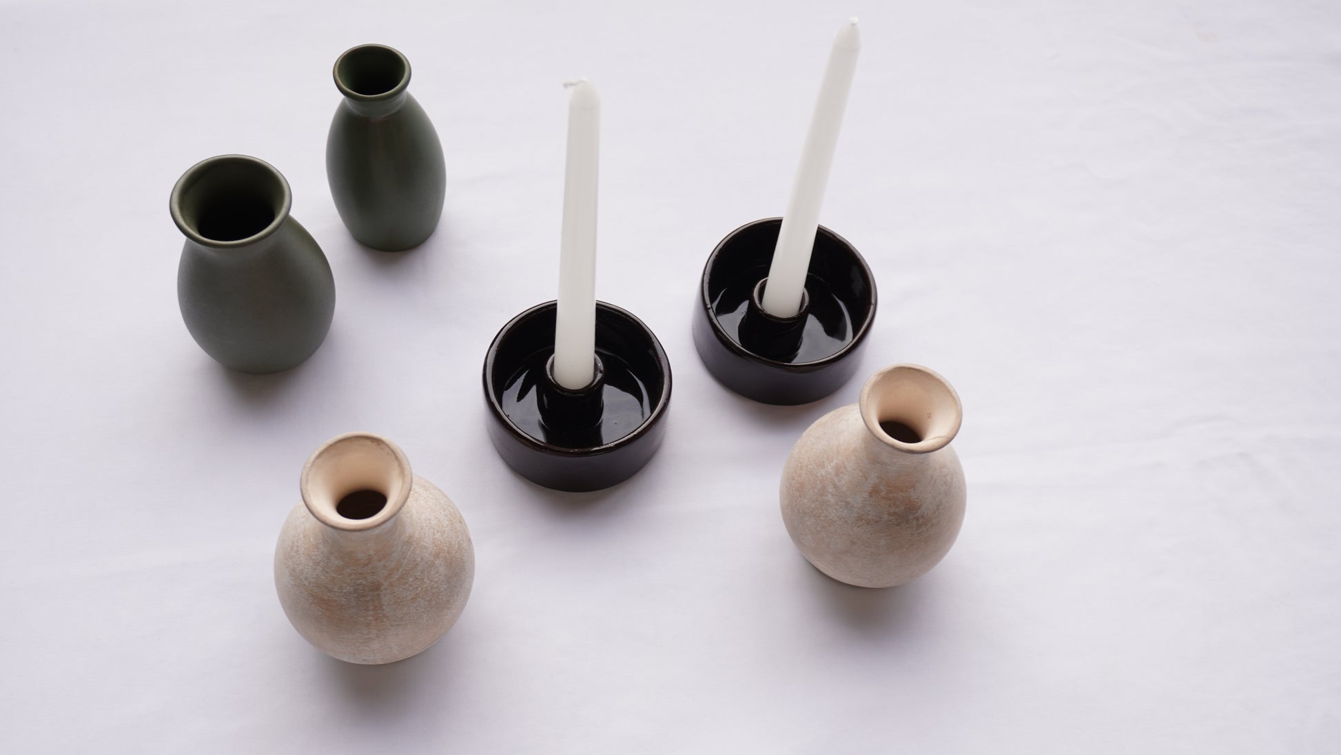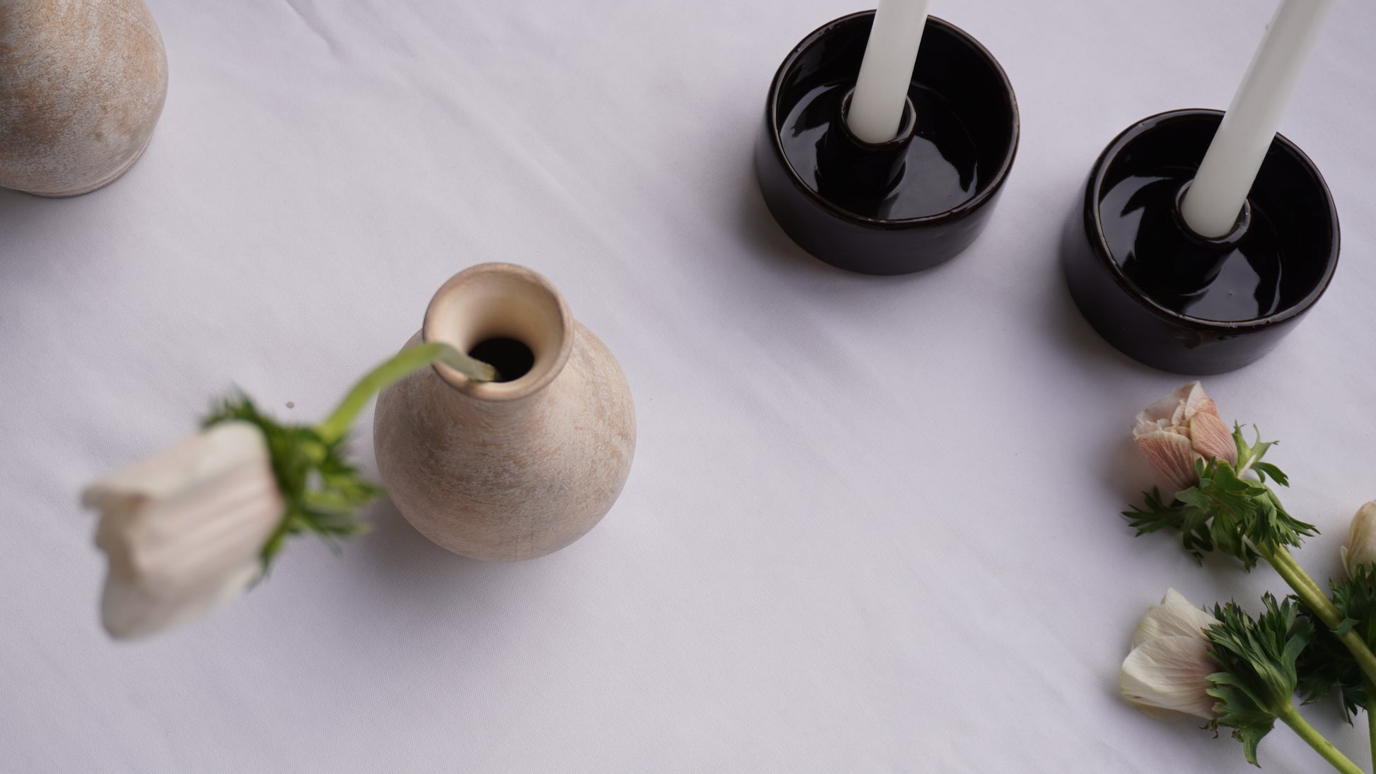 Recibe en casa nuestro set de floreritos y portavelas. Cada pieza está pensada para inspirarte a crear tu propio table setting navideño. Incluye 7 floreros de cerámica, 2 porta velas, 2 velas para los portavelas, 10 anémonas y caja de regalo.