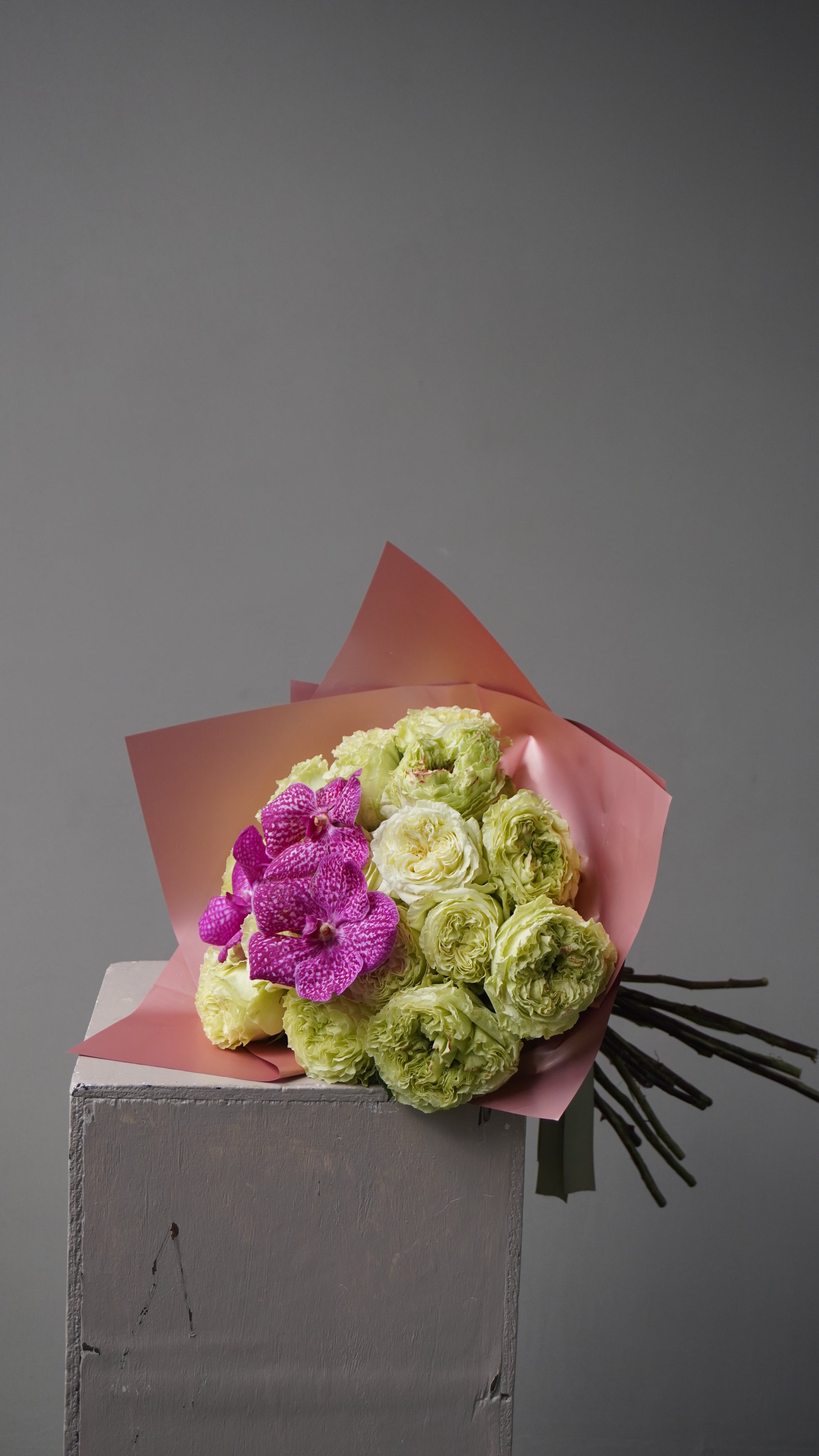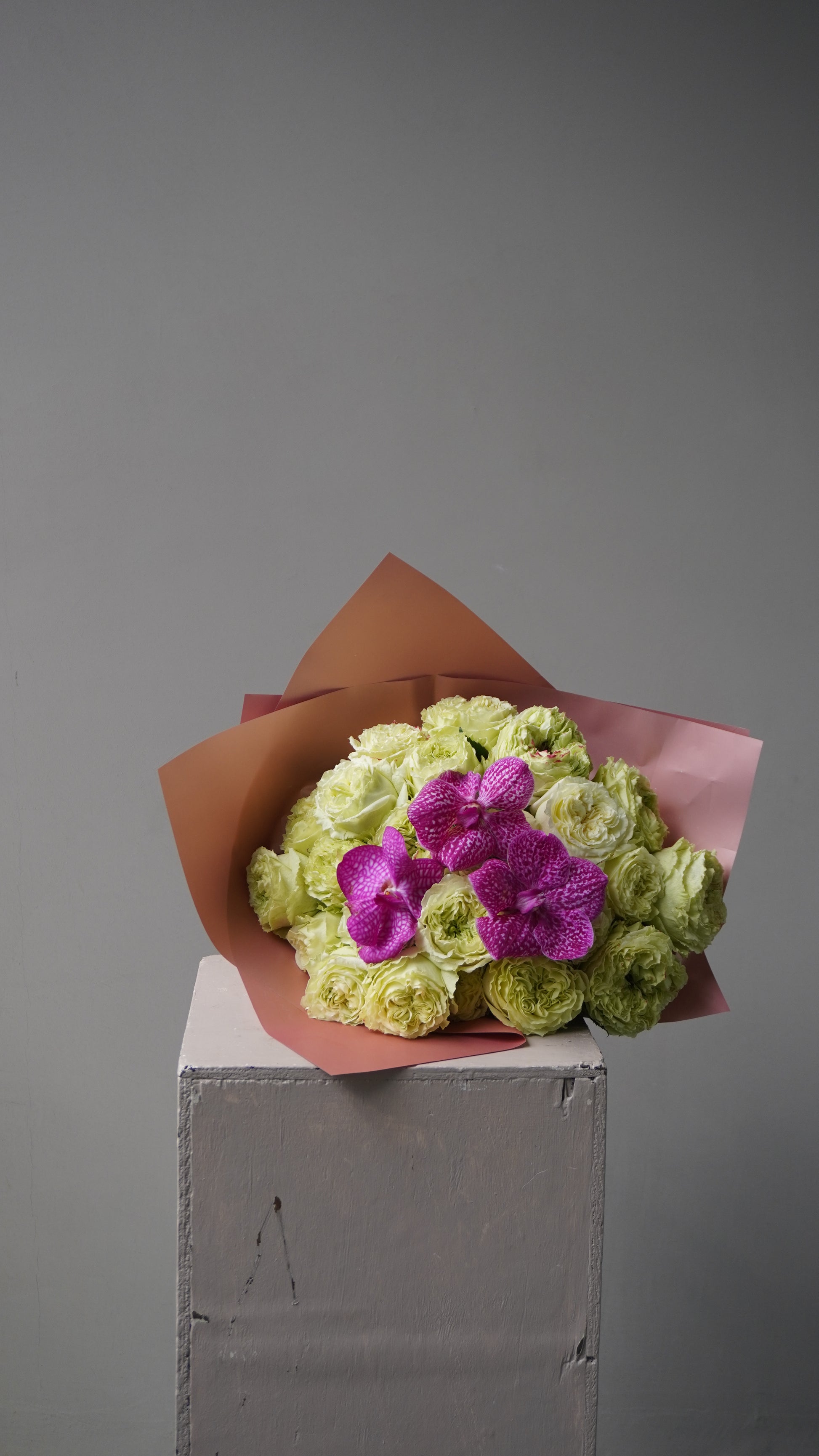Ramo con rosas inglesas y orquídeas.